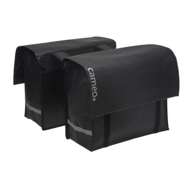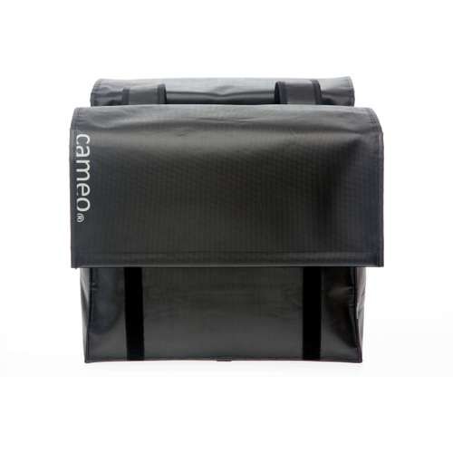 De Cameo Bisonyl tas is oersterke, grote dubbele boodschappentas, ideaal als je veel ruimte nodig hebt om spullen mee te nemen op de fiets. Waterafstotend De Cameo dubbele tas bisonyl is gemaakt van waterdicht bisonyl, ook wel vrachtwagenzeil genoemd. Als je de klep dichtmaakt is de tas goed bestand tegen regenbuien. Het materiaal is ook nog eens erg sterk. Veel ruimte Dit is een echte ruime fietstas, met een inhoud van 46 liter een van de grotere tassen van New Looxs. Als de tas vol zit dan houd je de tas goed bij elkaar door het extra bandje binnen in de tas. Daardoor gaat de tas niet openhangen. Je sluit de tas met klittenband en de klep is verzwaard tegen opwaaien. Bevestiging De fietstas wordt aan de bagagedrager bevestigd met riempjes. Dat maakt deze tas geschikt voor vrijwel alle fietsen, ook elektrische. De brug tussen de twee delen van de tas is 17 cm. Je kunt de fietstas extra vastzetten aan de zijkant van de bagagedrager met een klittenband riempje. Je zet de tas 1 keer vast en daarna zit deze goed bevestigd op de drager. Wij raden bij zwaar gebruik van deze tas aan om een New Looxs afstandhouder te gebruiken. Deze voorkomt dat de tas tegen het wiel aan komt als de tas zwaar beladen is. Je steekt de afstandhouder in de insteekstrips op de achterkant van de fietstas. Veilig De tas is afgewerkt met reflectie voor extra veiligheid in het donker. Pluspunten: Stevige, ruime fietstas. Zeer geschikt als boodschappentas. Geschikt voor elektrische fietsen. Met klittenbandsluiting. Te gebruiken met een afstandhouder. Ruimte voor snelbinders. Productspecificaties Materiaal : Bisonyl Afmetingen : 39x33x18cm (x2) Gewicht :2.6 kg Kleur: Zilvergrijs Inhoud: 46 liter